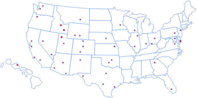 Arizona - Phoenix, Tucson, Scottsdale, Chandler, Yuma; California - Los Angeles, Orange County, San Francisco, Sacramento; Colorado - Denver, Boulder, Colorado Springs, Ft. Collins; Florida – Miami; Georgia - Atlanta, Marietta; Hawaii - Honolulu; Idaho – Boise; Illinois - Chicago, Oakbrook; Indiana - Indianapolis; Maryland - Baltimore, Landover, Laurel; Michigan - Troy, Ann Arbor; Minnesota - Minneapolis; Montana - Billings; Nebraska - Lincoln, Omaha; Nevada - Las Vegas, Reno; New Jersey - Edison, Parsippany; New Mexico - Albuquerque; Ohio - Cincinnati, Columbus, Dayton; South Dakota – Sioux Falls; Tennessee – Chattanooga; Texas – Dallas, El Paso, Houston, Irving, San Antonio; Utah - Salt Lake City, Jordan, Sandy; Virginia - Fairfax County, Leesburg, Reston; Wisconsin - Milwaukee; Washington - Seattle, Kent, Bellevue; Washington D.C.; Wyoming – Laramie, Cheyenne